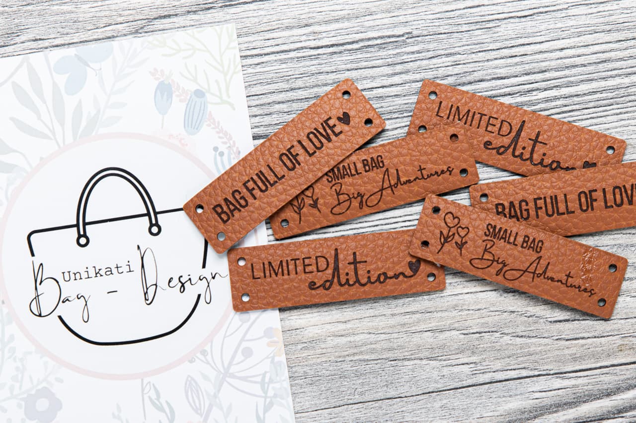 Les trois motifs reflètent des moments typiques autour de la couture et du quotidien. « LIMITED edition » souligne votre pièce unique, « BAG FULL OF LOVE » exprime l’attention portée à votre projet et « SMALL BAG Big Adventures » accompagne les petits sacs avec une grande signification.