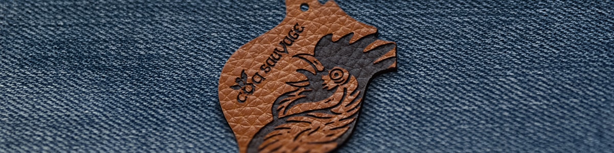 gravure au laser, Hang tag, Cuir végétalien, Étiquette de cuir, Corinera